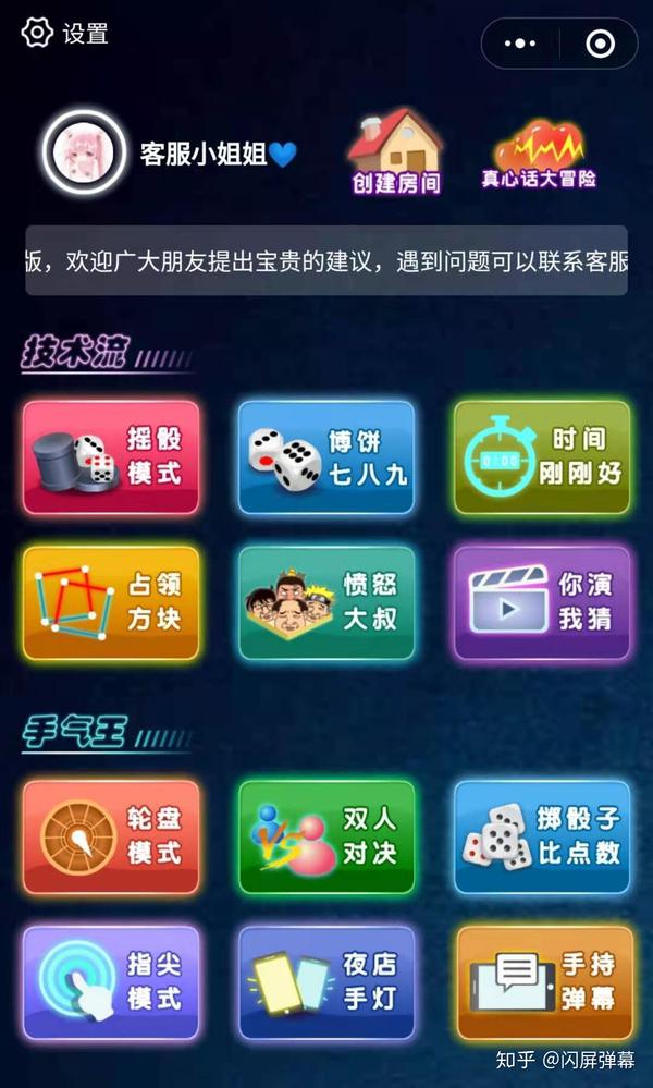 进入后,就可以看到首页有多种游戏,游戏还分为了技术流和手气王,而且这款小程序好的是,还可以创建房间,直接邀请朋友进来房间玩。