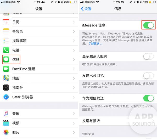 打开系统设置中信息选项,点击进入后,关闭 iMessage 信息的功能。